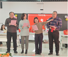 联欢会上,副书记赵泽凌代表全院师生向即将荣退的刘海军和任晓棠老师表达感谢之情,感谢他们为专业建设和学院发展作出的贡献,祝愿两位老师退休生活健康顺遂、幸福美满,常回家看看。纪丽岩、代文双代表全体教师向他们献上了鲜花,现场响起阵阵热烈的掌声,这份温暖的仪式感让在场老师深受触动。