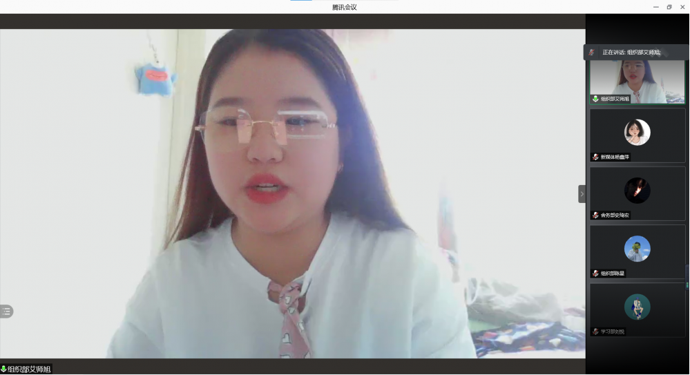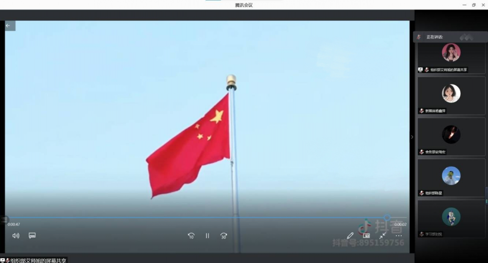 上午7点整,全体成员准备就绪,聚集在“云”空间,由主持人艾师旭宣布升旗仪式正式开始。同学们通过观看视频的方式,肃立家中,在嘹亮的国歌声中,怀着崇高的敬意,面对屏幕上冉冉升起的五星红旗行注目礼,随着国旗升起而心潮澎湃,向国旗致敬,为祖国加油,对伟大的祖国和中国共产党发出美好祝愿,更加坚定了自己爱国力行的使命责任。随后由生物19的王新同学进行国旗下演讲,她首先阐述了这场疫情对于每个人的教育意义,正视这样的经历,在困境中汲取成长教训,接着她提出了自己的两点倡议:一.迎接未来,我们要勇于担当;二.迎接未来,我们要充满信心。最后她还表示,成功不会一蹴而就,时代呼唤读书人,要把责任担在肩上,愿药化学子都能以勤为径,以苦做舟,让梦想照进现实。活动的最后,全体成员合影留念,由主持人艾师旭宣布升旗仪式圆满落幕。一次特殊难忘的升旗仪式,屏幕上飘扬的五星红旗,跨越时空的阻隔,将温暖坚毅的力量传递给每一位同学,散落在五湖四海的心终于在此紧紧相依。