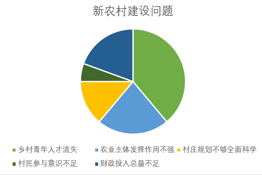报告数据整理:将所得村民们对新农村建设项目的实施所感受的问题得到如下数据并制成饼状图,可以更直观地展示了民声,进一步推进宣传工作,使实践调研更有说服力。