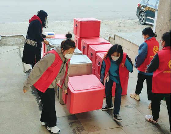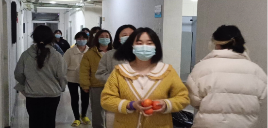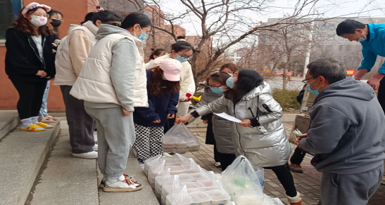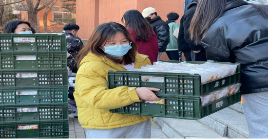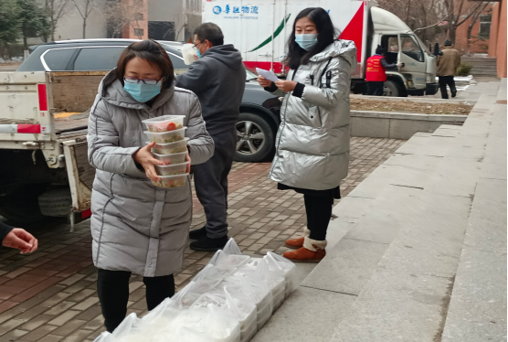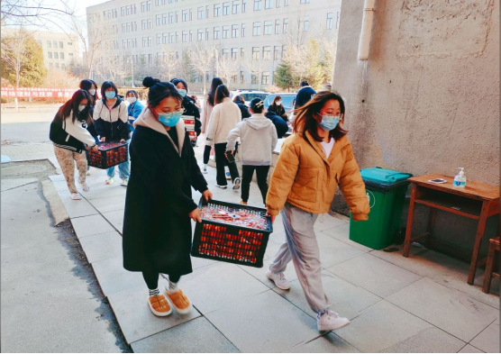 药化学院志愿者积极参加到疫情防控中,每天都为同学送去温暖的饭菜。为了让同学们及时就餐,还能确保防疫工作安全有序的进行,在送餐过程中,志愿者提前到宿舍楼下集合,将需要配送的饭菜分为多组高效率送餐。晚饭之后,又为同学们搬运水果。保证每个学生吃上新鲜的水果,为同学们带来安心与温暖。此外,志愿者还为有需求的同学搬运矿泉水和卫生纸等日常必需品。正是因为这些志愿者的一路前行,坚守校园,为校园封闭期间各项工作的顺利开展提供有利的后勤保障。