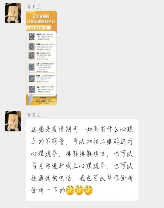 校园疫情防控封闭管理以来,学校高度重视学生心理健康。为进一步化解学生负面情绪,减轻学生心理焦虑,减少因疫情对生活带来的困扰,引导学生保持乐观的心态面对疫情,坚定战“疫”必胜的信心,药化学院组织开展了“青语导航”心理疏导系列活动。