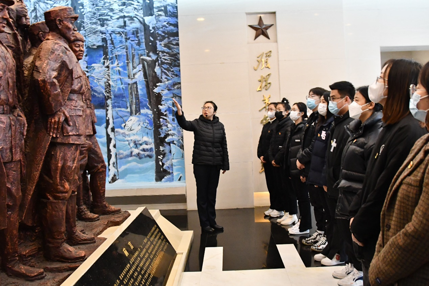 活动第三项,参观烈士纪念馆。正门横额上“本溪烈士纪念馆”七个大字由徐向前元帅题写。纪念馆分上下两层,馆内陈列着“抗日战争时期、解放战争时期、社会主义建设时期和改革开放时期”的烈士事迹和文物。通过聆听讲解、观看文献资料、参观实物展出等形式,党员师生看到了旧中国日本侵略东北时劳苦大众的悲惨生活,感受了各个时期革命烈士在中华大地上写下的可歌可泣的英雄诗篇。一张张的作战地图、一架架经历战火洗礼的步枪、一个个生动形象的烈士雕塑、以及珍贵的战时照片,再次重现了当年攻坚战激烈壮观的场面,深深地震撼着每个人的心灵。
