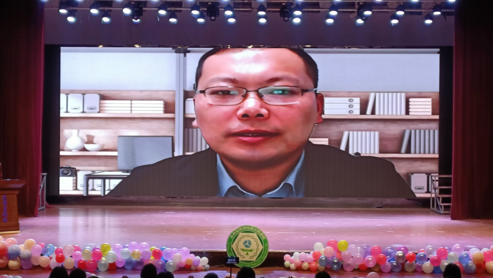 表彰大会在院新媒体中心制作的精彩视频中正式拉开序幕,视频中回顾了2021年药化学院高举党旗,在党的光辉照耀下开展的一系列党史学习教育、新生军训、志愿者活动等丰富多彩的校园文化生活。由于疫情原因,药化学院院长安长伟教授通过线上的方式,代表学院党政领导班子和全院教职工为新生致辞,他首先对以优异成绩考入药化学院的全体22级新同学表示了诚挚地欢迎和祝贺。其次对过去一年的整体情况作了回顾和总结,他希望新同学做到心中有大爱、脚下有力量,在药化学院的广阔舞台上,求得真学问,学得真本领,在为中华民族伟大复兴的征程中彰显青春担当,书写精彩人生。