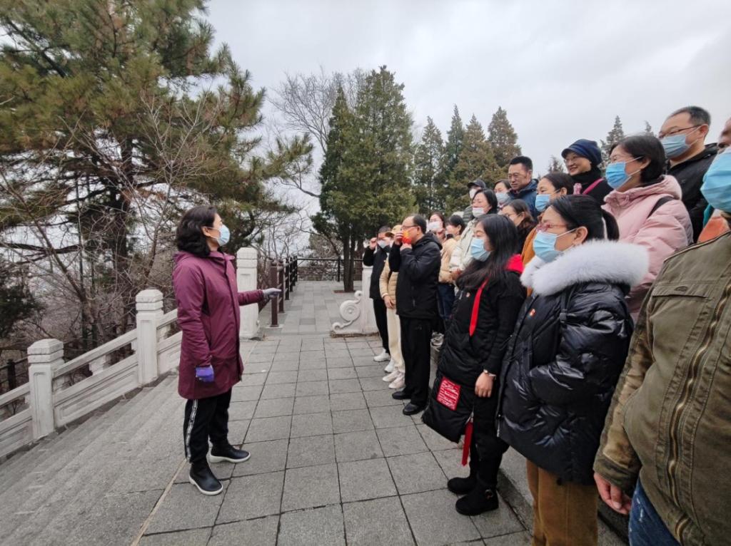 下午13:00全体党员师生准时到达本溪市望溪公园,他们拾级而上、步步攀登,一直到望溪公园顶峰的本溪革命烈士纪念碑前。仰望着巍峨耸立的烈士纪念碑,党员们心潮澎湃,“革命烈士永垂不朽”八个大字在阳光下熠熠生辉。活动第一项,首先由总支书记纪丽岩介绍了本溪革命烈士纪念碑的历史由来。这座为纪念本溪解放战争时期的革命烈士丰碑建造之初就受到了辽宁省政府的大力支持,并于1959年元旦,中央领导朱德、董必武、谢觉哉等人到本溪视察时为纪念塔题字,历时两年半的时间于1961年10月正式落成。历经岁月洗礼,现已成为山城人民的精神圣殿。纪书记最后勉励全院党员师生:要从革命历史中汲取伟大的革命力量,坚定理想信念,接续艰苦奋斗,奉献教育事业,为实现中华民族伟大复兴培养有用人才!