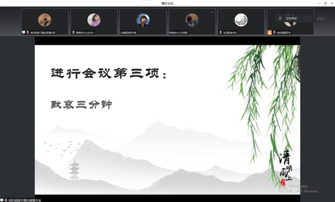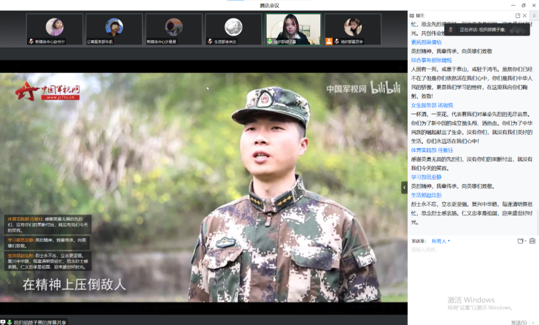 日暖风熏,翠柏凝春,清明又至。清明节是我国人民悼念逝者、寄托哀思、缅怀先人的传统节日。为悼念革命烈士,缅怀先烈的丰功伟绩,继承革命先辈们的光荣传统,弘扬爱国主义精神,生物医药与化学工程学院于2023年4月5日使用腾讯会议举办线上清明节祭扫活动,药化学院学生会、分团委和新媒体中心全体成员出席此次活动,深切缅怀为祖国和人民利益牺牲的革命先烈。