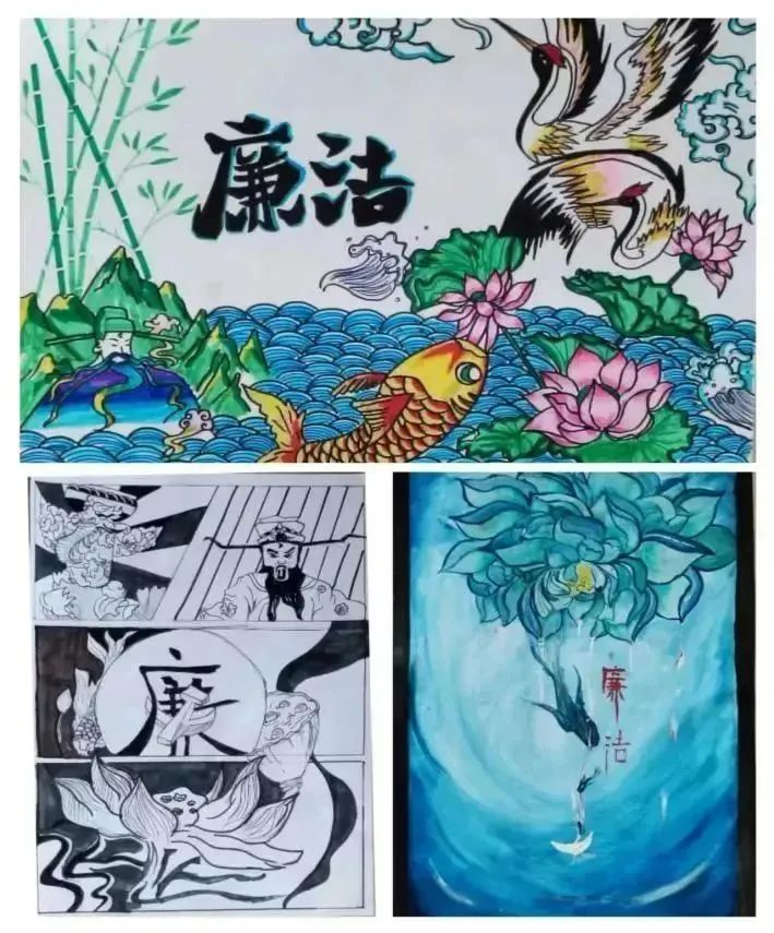 “学习贯彻二十大,廉洁文化颂清风”平面设计和绘画作品