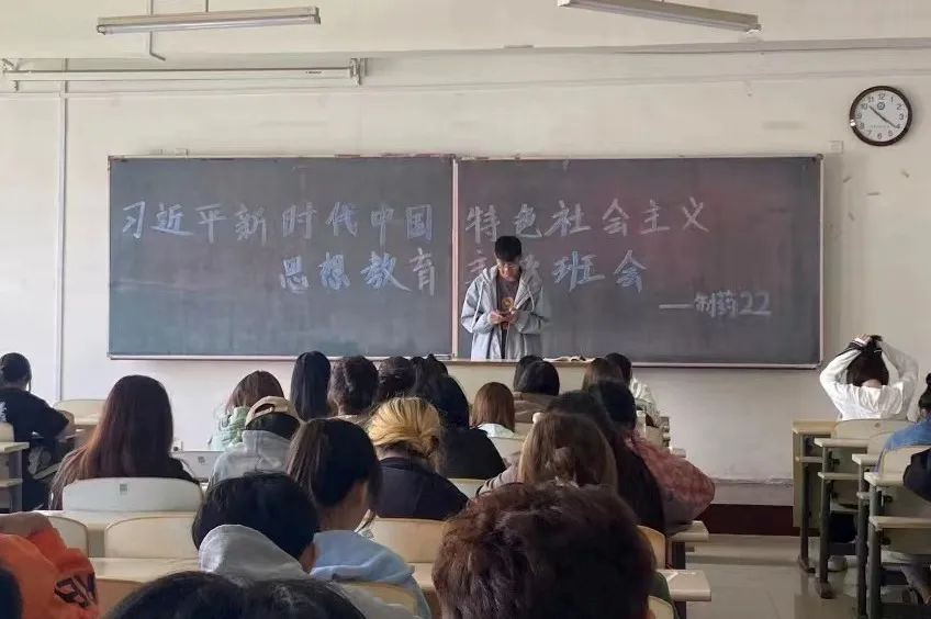 辅导员胡雁波老师围绕“学习党的二十大精神”“牢牢把握总要求”“根本任务”等方面为环境20、制药21、能化22班的同学进行培训。应化20班班会由团支书马玉婧同学主持,分别从习近平新时代中国特色社会主义思想的核心内容、基本方略及新时代十三个方面的历史性成就等方面进行讲解。各班班会以贴近学生的方式,教育引导广大青年对习近平新时代中国特色社会主义思想有更深入的理解,增强责任感和使命感。