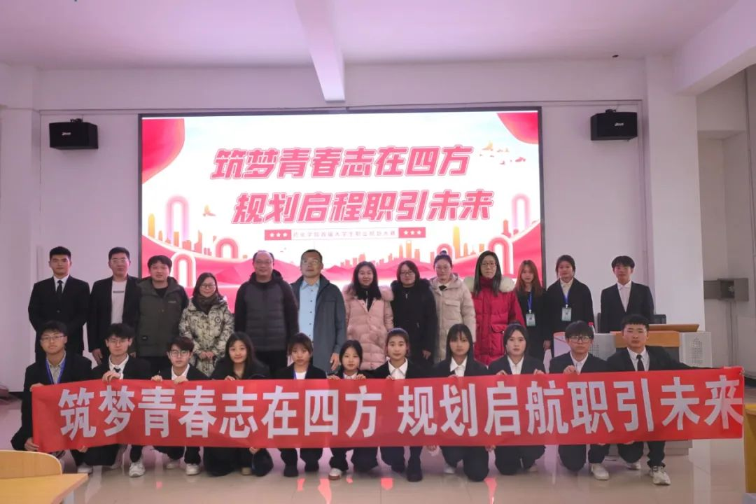 选择决定未来,规划成就人生。为进一步引导大学生树立正确的成才观、就业观,普及大学生职业规划知识,提高大学生创新、实践和就业创业能力,12月13日,生物医药与化学工程学院在智慧东楼多媒体教室举办首届“筑梦青春志在四方规划启航引领未来”大学生职业规划大赛。本次活动由学院院长安长伟,副院长代文双、张丹风,党总支副书记管霞,辅导员全凤兰、王姣月、果巾迪、张宇担任评委。