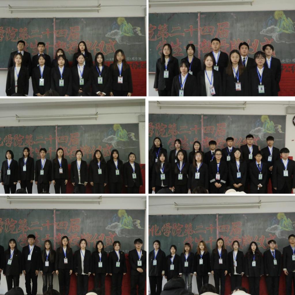 为了进一步完善学生会、分团委、新媒体中心管理体制,实现学生干部的新老交替,从而更好地开展学生组织的各项活动,进一步加强我院学生干部队伍建设,强化学生干部的责任意识和担当精神,切实保障学生干部工作的连续性。生物医药与化学工程学院于12月6日下午3时在B3-310组织开展了第二十四届学生干部授牌仪式。本次活动由综合事务部部长任家辉主持,胡雁波、全凤兰、果巾迪、王皎月老师及第24届新任学生干部参加了此次活动。