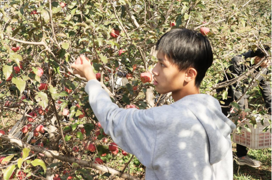 本次活动意在通过协作采摘,促进同学们进一步养成良好的行为习惯,形成自信向上、有责任心等良好品质和保护生态环境的意识。在苹果园里,果农们为同学们讲解了摘苹果的方法,并作了示范,同学们在老师的组织下井然有序的采摘着苹果。这次摘苹果活动同样也增强了同学们的团队合作意识,在采摘的过程中,要相互协作,互相帮助,才能有更多的收获。