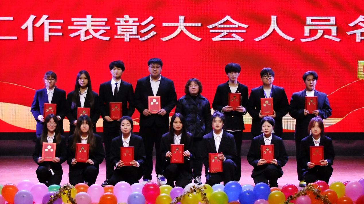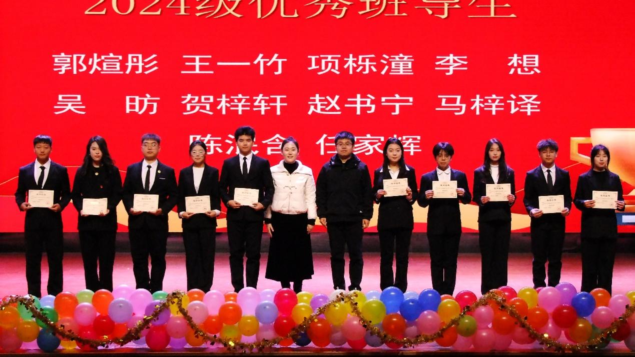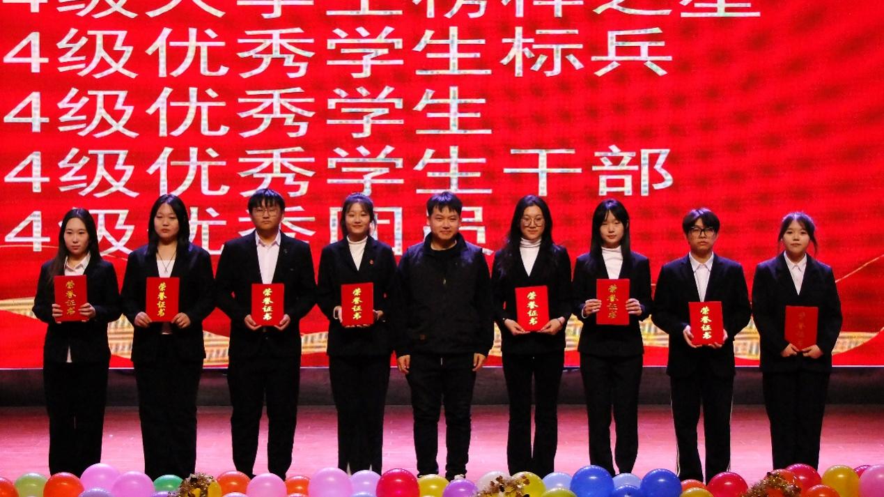 随后,主持人宣读了2023-2024年度学生工作表彰名单。此次获奖不仅是对过往努力的肯定,更为2024级新生树立起光辉榜样,激励他们砥砺前行,积极参加学校活动,向着美好的未来奋勇前行。